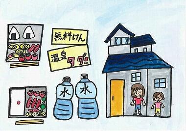 おわりに 「僕は、災害が起きたらどこに避難するかを調べておきます。」 「僕は、いつ起きてもいいように、大事なものは2階に置いておきます。」 「僕は、はぐれても大丈夫なように、家族とどこで待ち合わせるかを決めておきます。」 「ぼくは、避難場所をきめて、避難バックを 用意しておきます。」 「私は、いつ避難するとか、どのみちで避難するかを、家族で確かめておきます。」 「私は、また起きるかもしれないから、避難バックを用意しておきます。」 「私は、あぶないと思ったら、すぐ避難するようにします。」 「私は、すぐ避難できるように、避難する道を確かめておきます。」 そして、今回の事を忘れないように教訓として残し、そして伝えていきます。 |